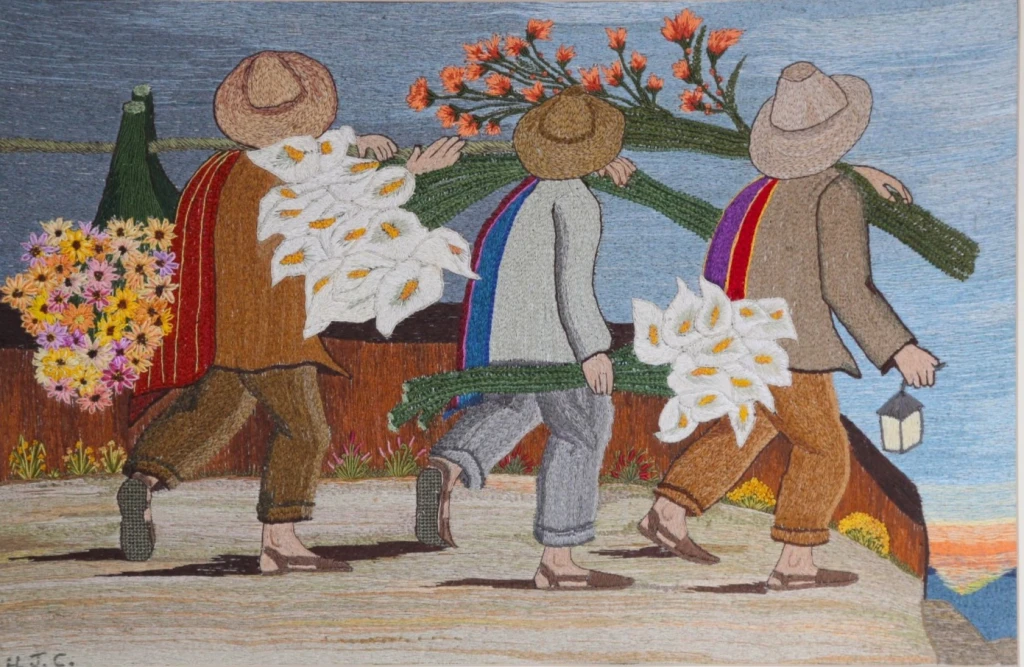 ¿En qué sentido Hilda Jorquera sí es una artista? Lo es, en el sentido en que el valor de su obra reside en el tratamiento que realiza de los materiales y su dominio técnico o su gran capacidad para codificar distintos significados. Tenemos ante nosotros un evidente intento por comunicar realidades y emociones de modo premeditado, sin un fin utilitario. De modo que si, seguimos la regla de que lo que debe ser considerado arte se basa en lo excepcional, y no en la común, entonces la protagonista de la exposición de hoy, es una artista en todo el sentido del término. Asimismo, ¿en qué sentido Hilda Jorquera es una artesana? Es una artesana, en cuanto sus obras sí poseen un plan definido, destinado a ser ejecutable con unos patrones relativamente delimitados acerca del bordado, con un manifiesto más o menos claro acerca de sus temáticas y representaciones simbólicas, generalmente asociadas al costumbrismo chileno o bien al paisaje convencional. Por supuesto, no podríamos hablar de su trabajo en términos de diseño, puesto que cada una de sus obras es única, y no está producida en serie ni tiene una función determinada, como podría ser el caso de la ropa, los vasos, las muebles u otros artefactos afines. Tampoco vemos en ella una artesanía hecha industrialmente. Su proceso de manufactura siempre y en cualquier caso es manual y se resuelve, como es evidente, con total prescindencia de maquinarias. Cada pieza, si bien es susceptible de ser circunscrita a cierto acervo cultural criollo, le pertenece a ella, que modula y reinterpreta tal acervo. Sus temáticas nos hablan de aquello que está, o estuvo entre nosotros; su valor estriba en recoger lo cotidiano que nos rodea y llevarlo a cabo con suma precisión, catalizando belleza, cuidado y conocimiento tradicional heredado en cada obra, pero cuyo fondo se escinde entre lo personal y lo social, sin perder por ello su valor aurático propio y desde ahí extenderse hacia espacios más hondos.